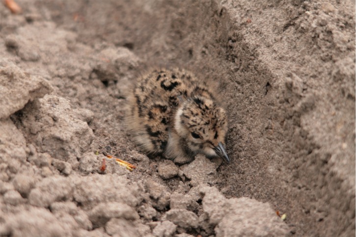 Ein junger Kiebitz hat gerade seine Geschwister verloren. Sie wurden lebendig begraben, weil sie sich nicht vor dem Pflug retten konnten.
