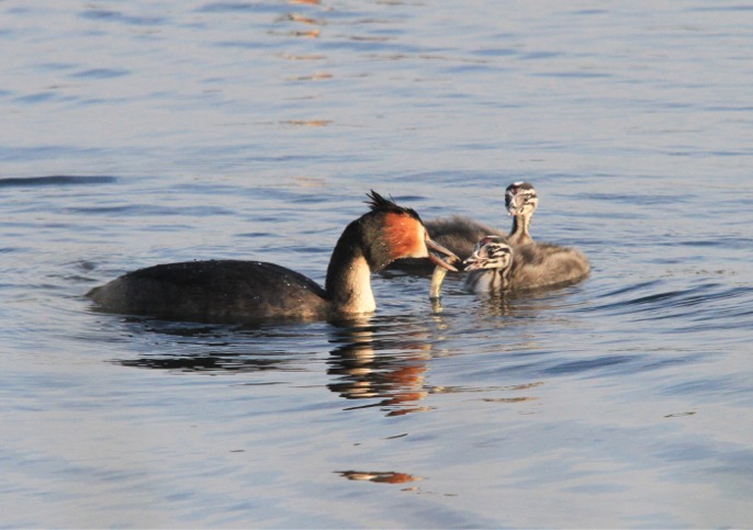 Haubentaucher mit Nachwuchs.